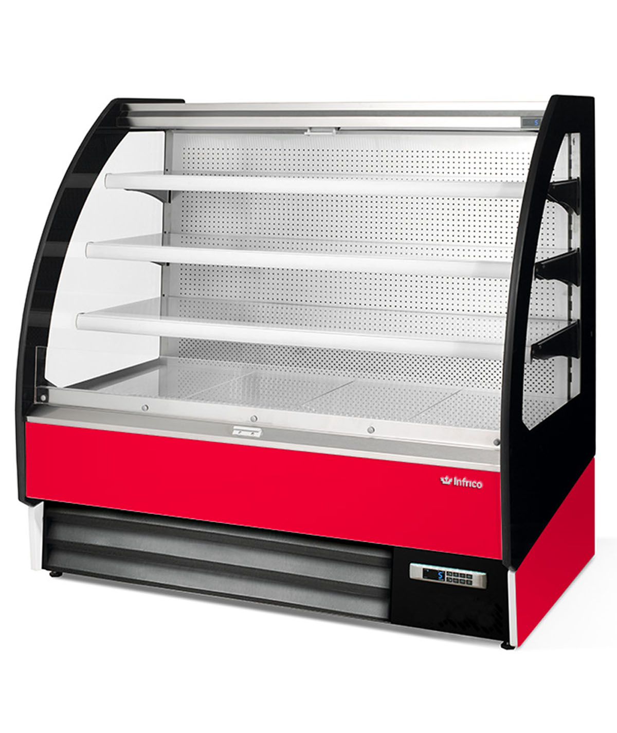 Vitrina Expositora 49″ con cubierta superior en Acero Inox 304 18/10 de 12.8 pies3. Cristal doble en costados (laterales). Bancada en acero esmaltado. Decoración en DM hidrófugo laqueado. Respaldo trasero inyectado en poliuretano. Panel interno en Acero Inoxidable perforado. Cortina nocturna y tabica frontal. Iluminación LED. Sistemas de condensación ventilada.