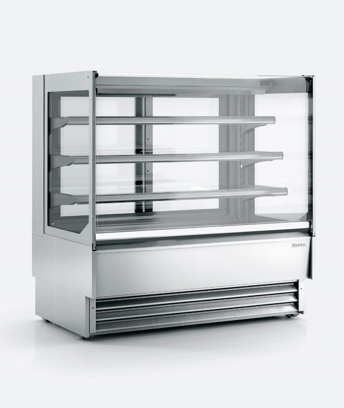 Vitrinas Expositora 36″ con cubierta superior en Acero Inox 304 18/10 de 9.6 pies3. Cristal frontal recto templado abatible. Cristales laterales dobles. Bancada en Acero Esmaltado. Sistema de condensación ventilada y evaporación forzada. Bandeja evaporativa doble. Iluminación LED. Puertas correderas traseras dobles. Termostato electrónico trasero. Display de temperatura.